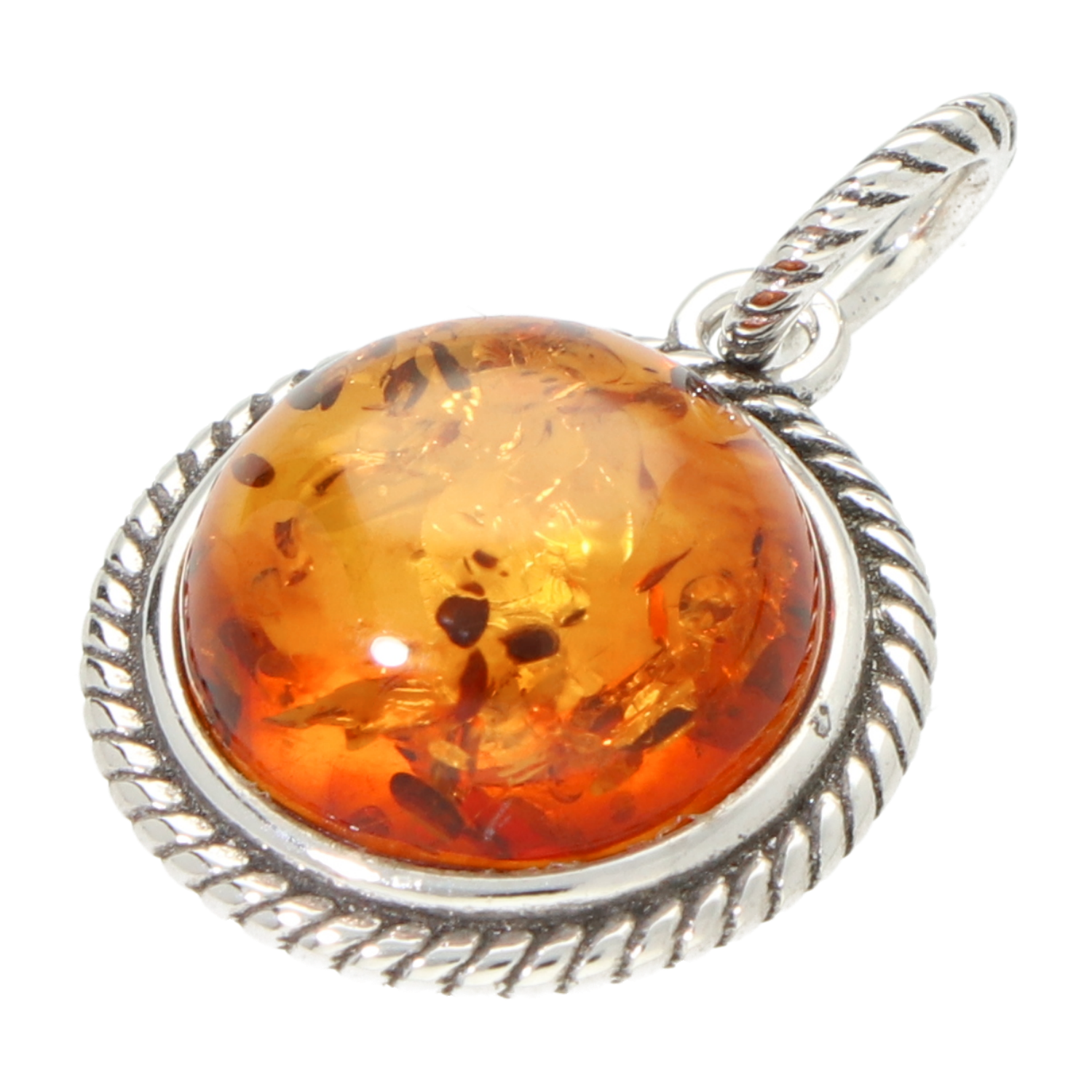 Deze ronde hanger met cognac amber voor dames is een elegant en tijdloos sieraad. De natuurlijke amber heeft een warme cognackleur en een unieke structuur, waardoor elke hanger zijn eigen karakter heeft. De ronde vorm zorgt voor een klassieke uitstraling die moeiteloos te combineren is met verschillende kettingen en outfits.