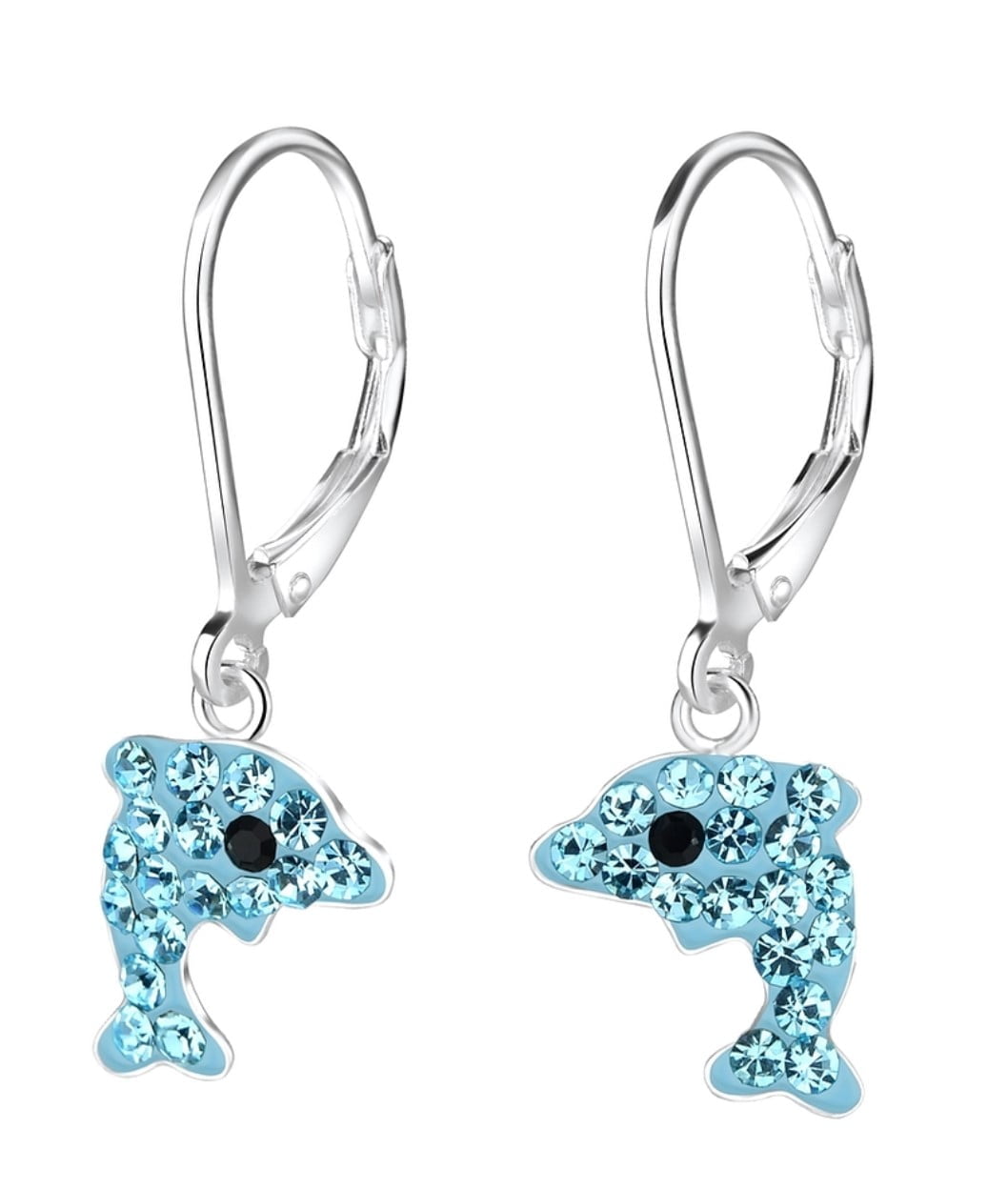 Deze prachtige dolfijn oorbellen zijn perfect voor meisjes die dol zijn op zeedieren en sieraden! Ze zijn gemaakt van hoogwaardig zilver en zijn voorzien van schitterende blauwe kristallen die schitteren en glinsteren in het licht.