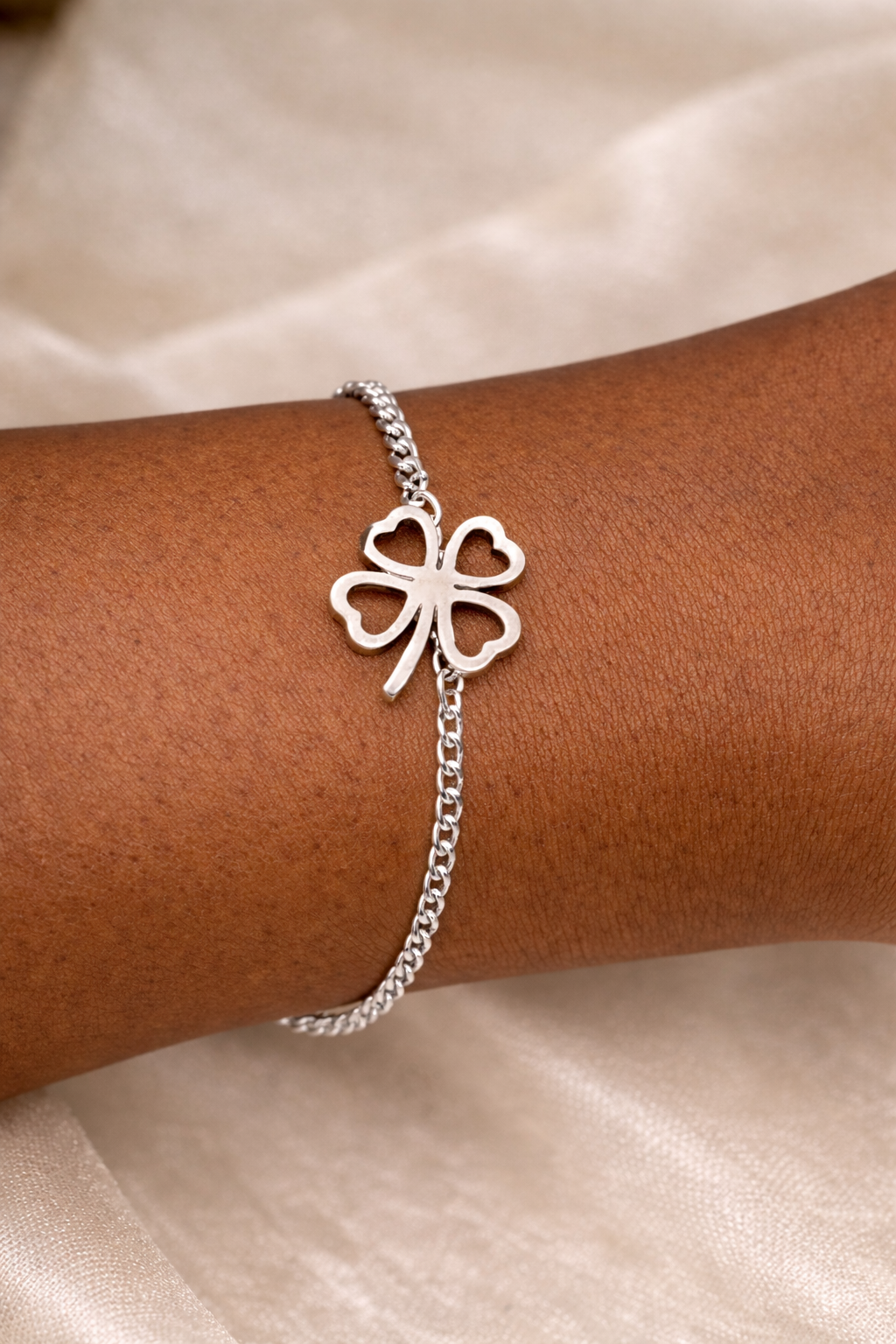 Draag geluk om je pols met deze elegante klavertje vier armband van 316L premium roestvrij staal.Het klavertje vier is een tijdloos symbool voor liefde, hoop, geloof en geluk – een betekenisvol detail dat elke dag een glimlach brengt.