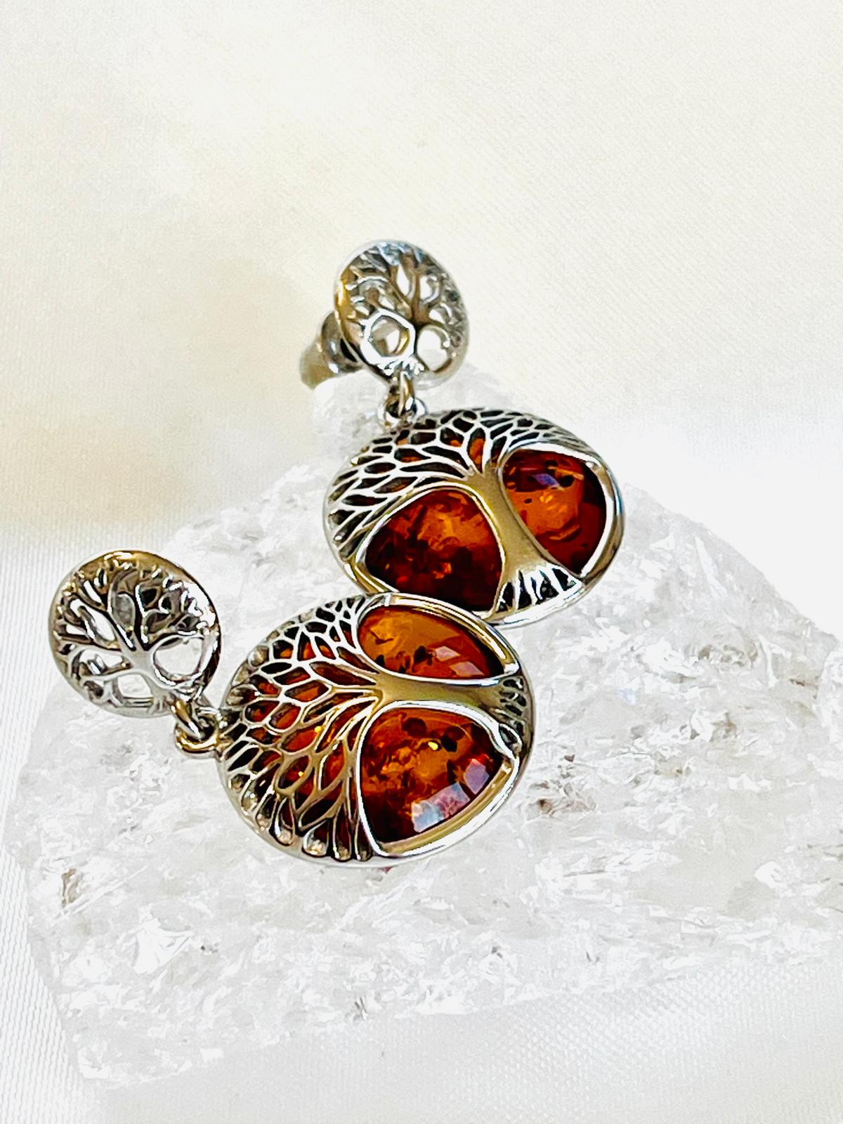 Elke ambersteen heeft een unieke structuur, waardoor elk paar oorbellen een eigen karakter heeft. Deze levensboom oorbellen van gerhodineerd zilver zijn elegant en comfortabel om te dragen, zowel bij dagelijkse outfits als bij speciale gelegenheden.