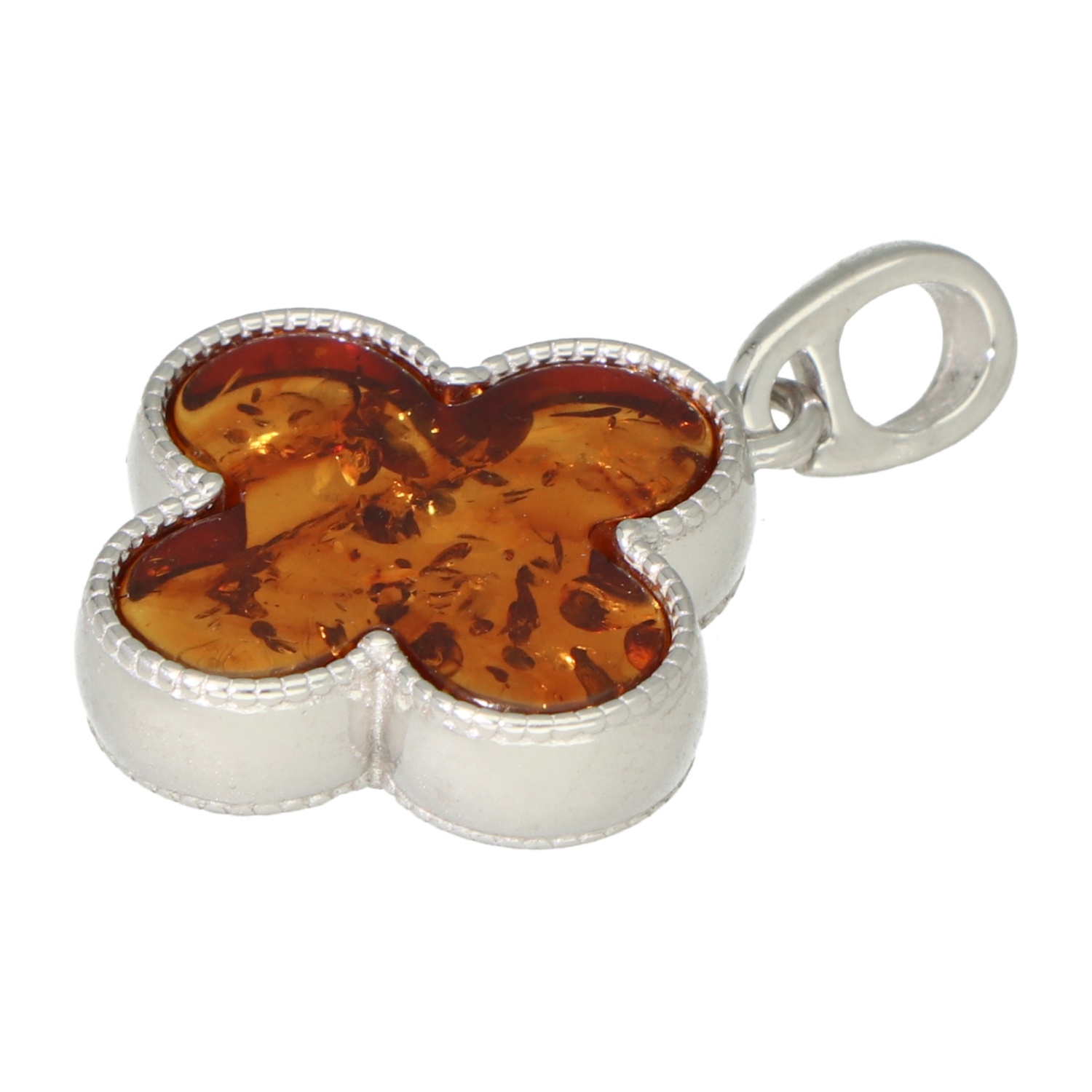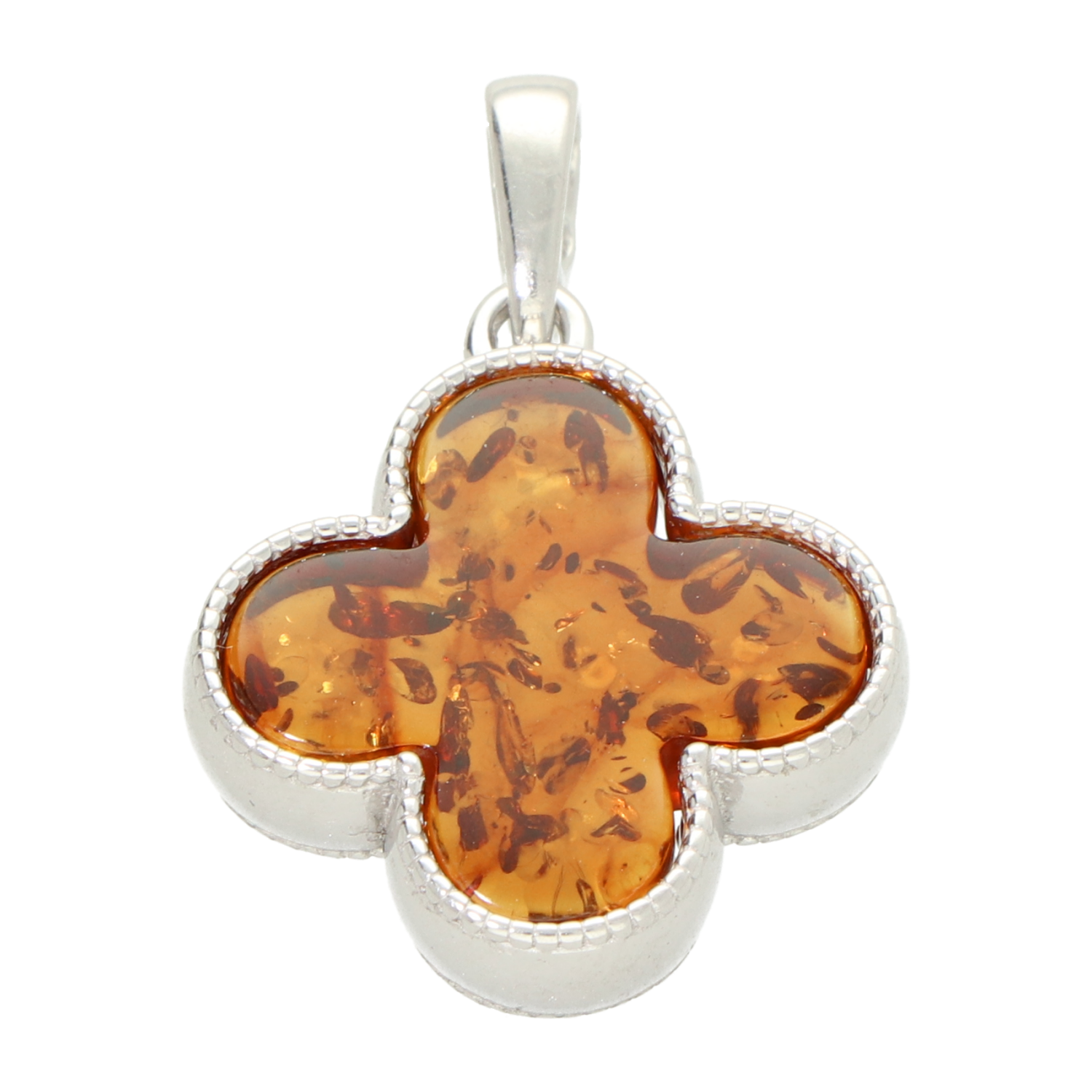 Zilveren Klavertje vier Hanger met Barnsteen Amber Gerhodineerd – Bruin Congac